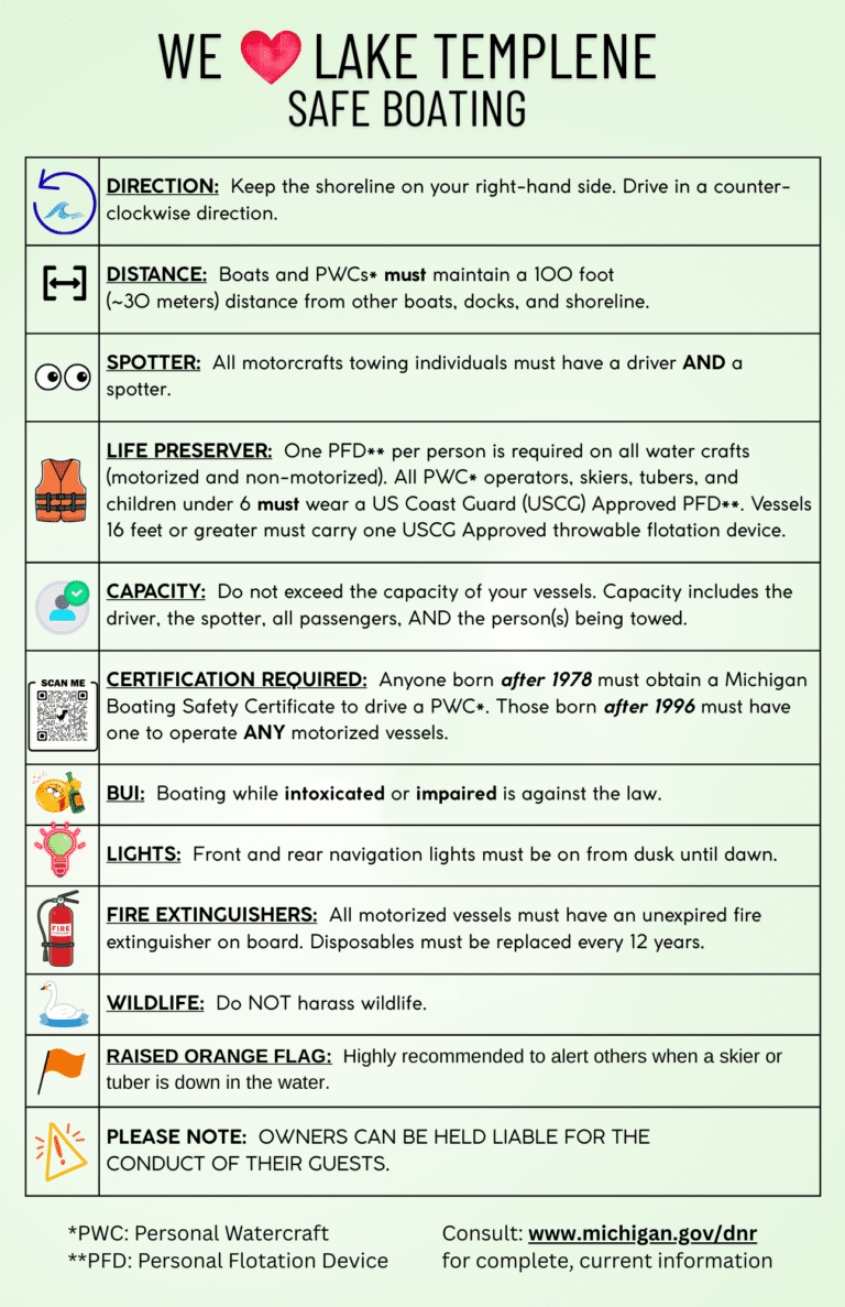 To become a member, you must own property on or around Lake Templene and pay the annual membership fees. You can register online or contact us for more information.